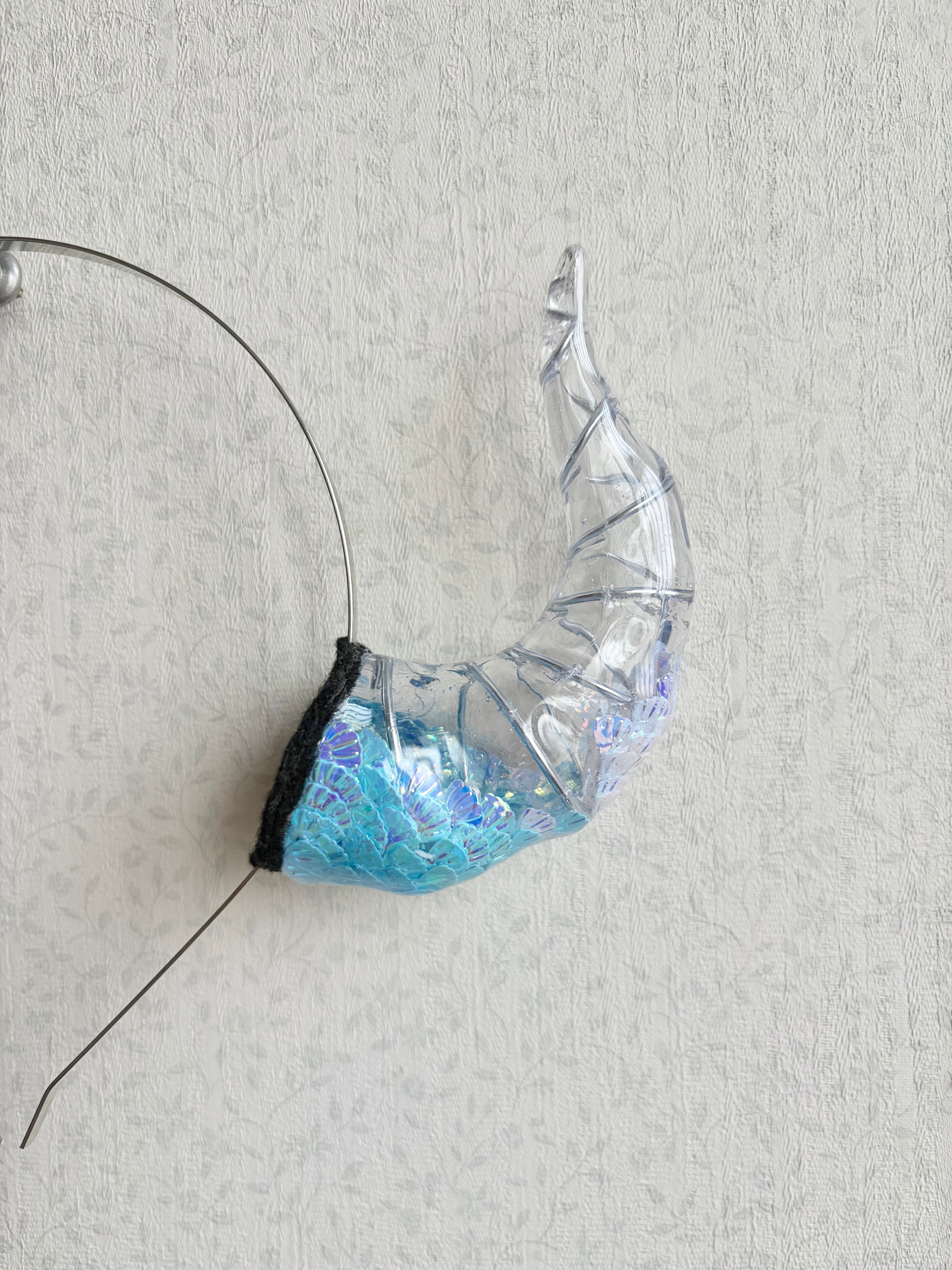 3.マーメイドツノ カチューシャ 白×水色(偏光カラー)