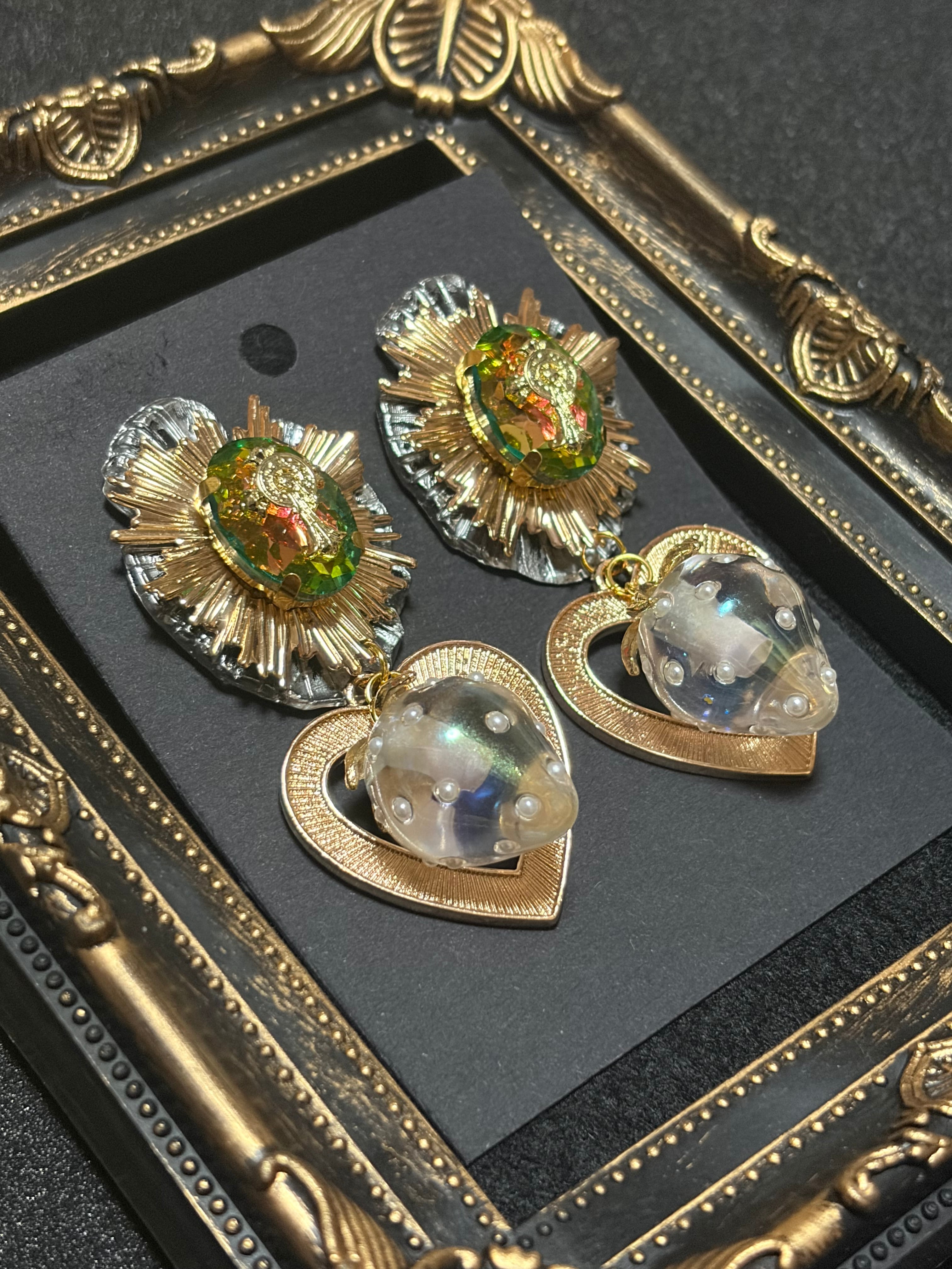 21.森のオーロラのガラスといちごのピアス