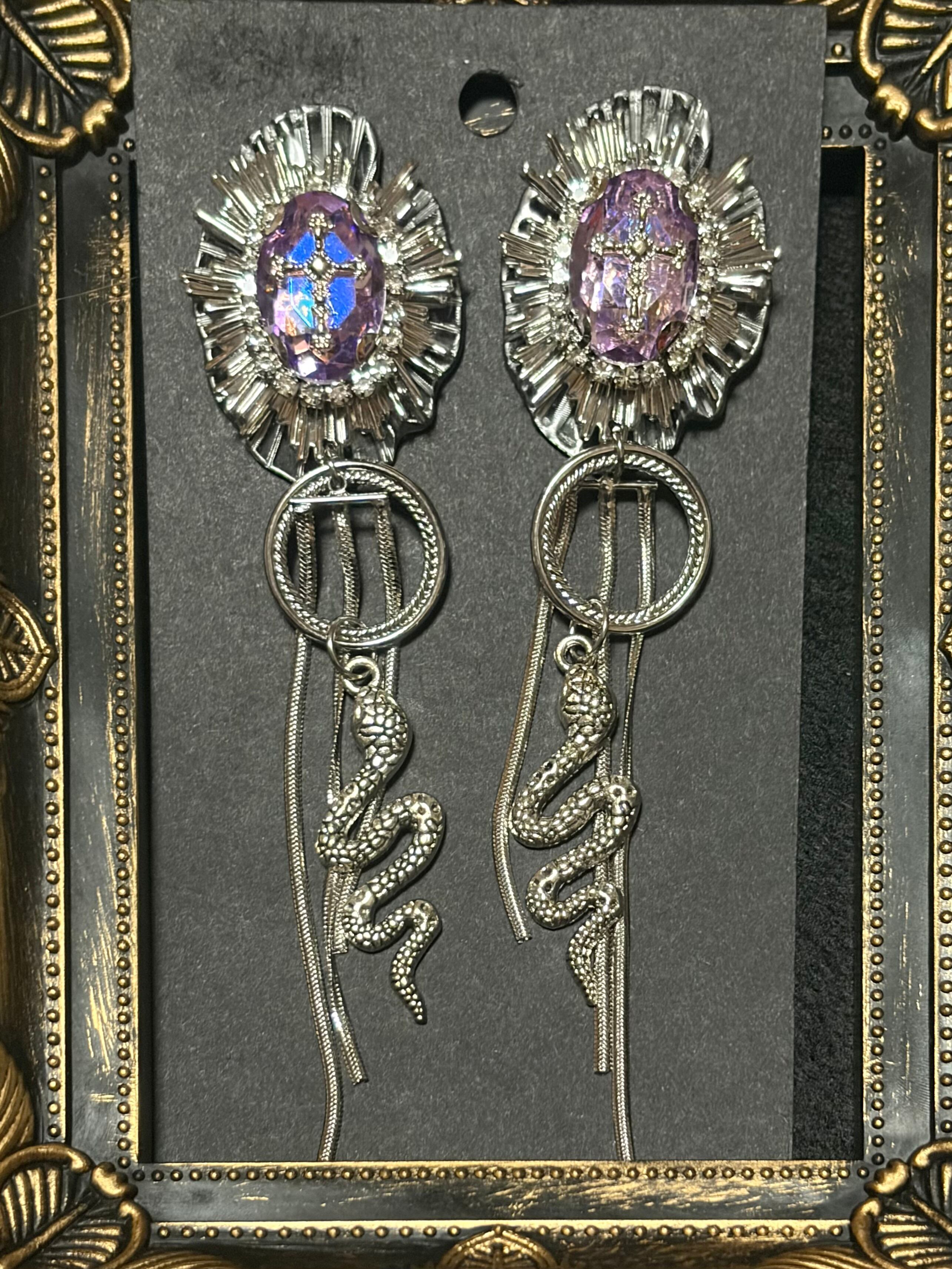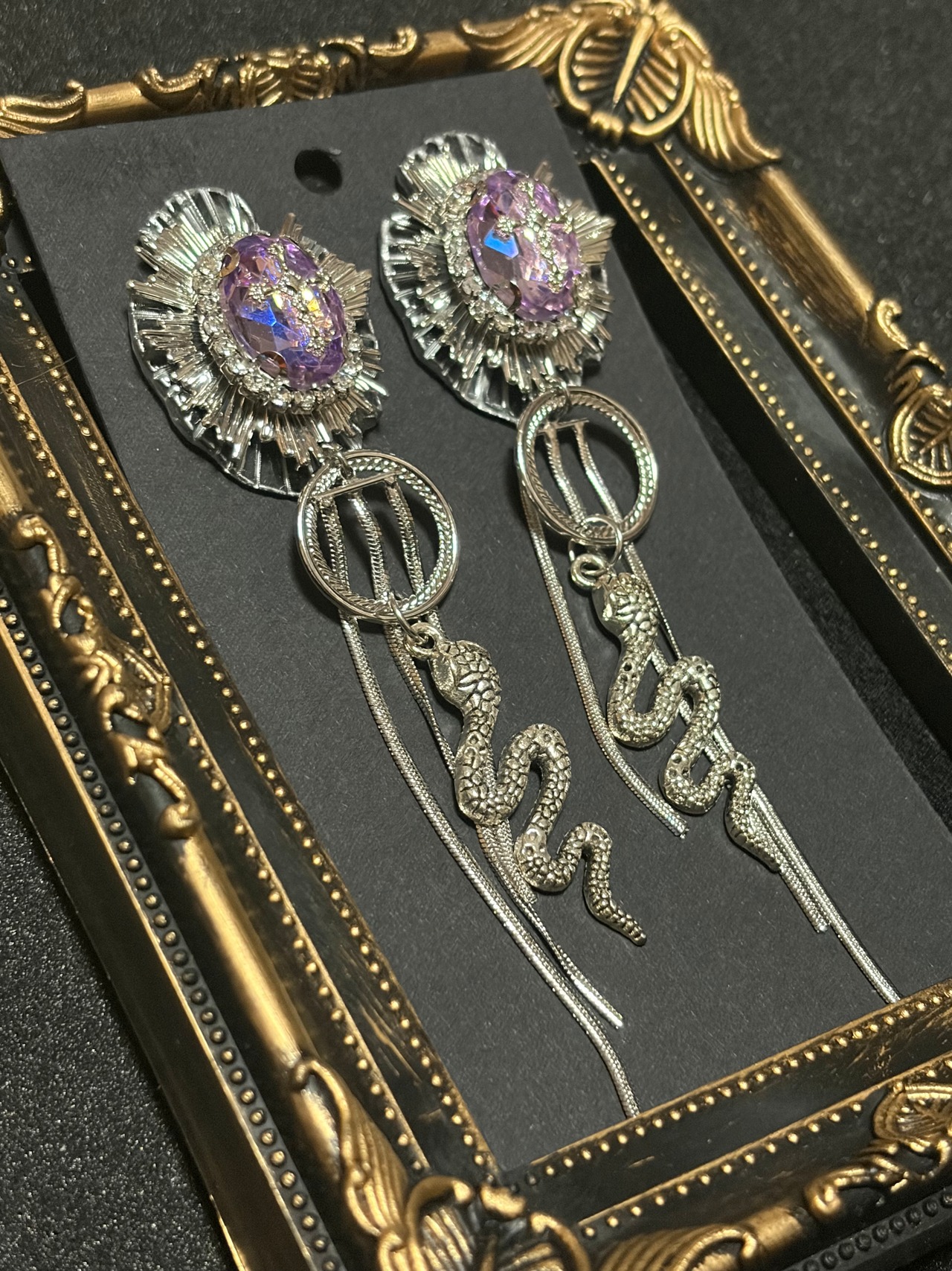 38.人魚の目のガラスと蛇とロングチェーンのピアス